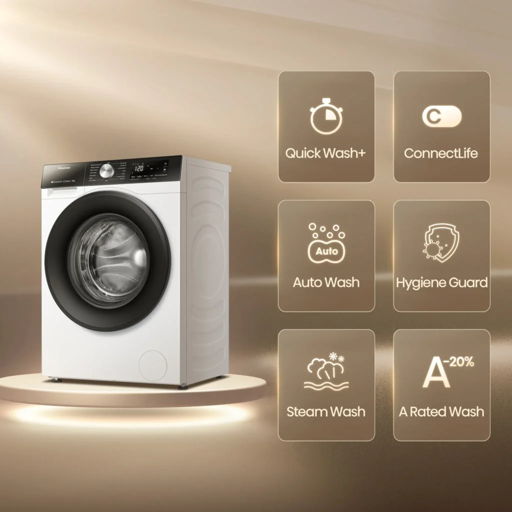 Hisense WF3S8043BW3 Lavadora 8 kg 1400 rpm Clase A WiFi Carga Frontal Blanca