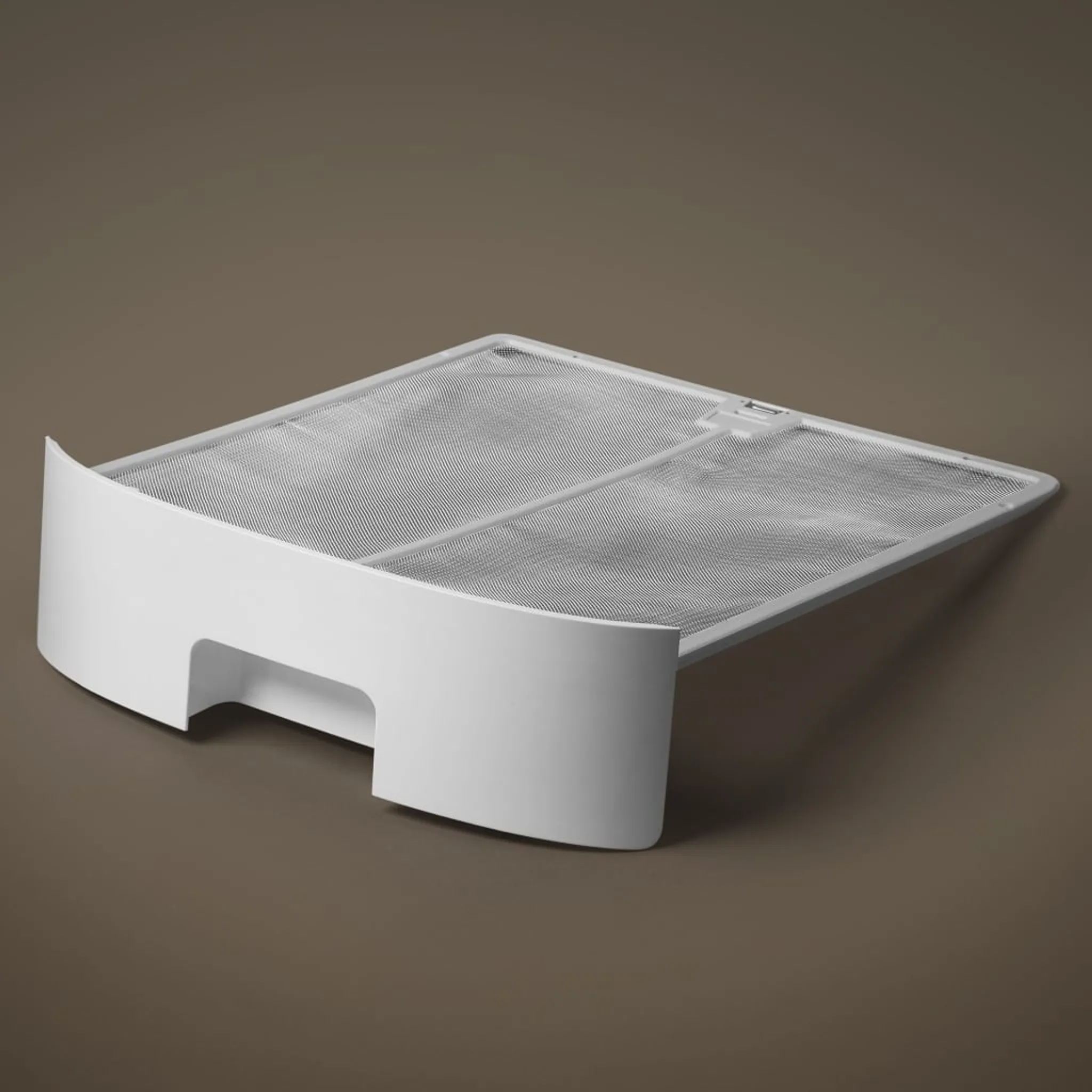 Su diseño moderno con acabado textil y estructura compacta lo convierte en un elemento decorativo que se integra perfectamente en cualquier espacio.