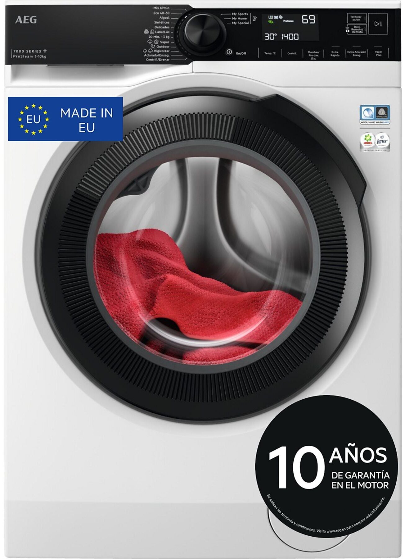 La lavadora dispone de conectividad y es compatible con la app My AEG Care, lo que permite personalizar ajustes y gestionar el lavado de forma más cómoda. También incorpora Tambor Care, diseñado para tratar las prendas con mayor suavidad, y programas prácticos como MixLoad 69 min, 3 kg en 20 minutos, higiene, outdoor, lana, delicados, sintéticos y algodón.