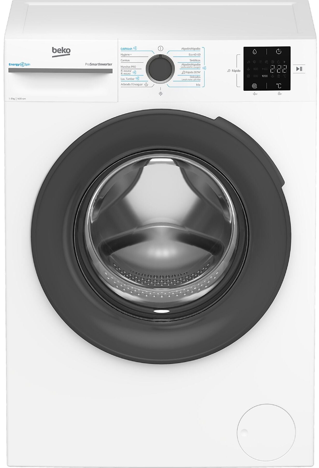 Lavadora Beko VBM3WFT39413WA de 9 kg con 1400 rpm, clase energética A, motor ProSmart Inverter, tecnología SteamCure™ y programa StainExpert™ para manchas difíciles.