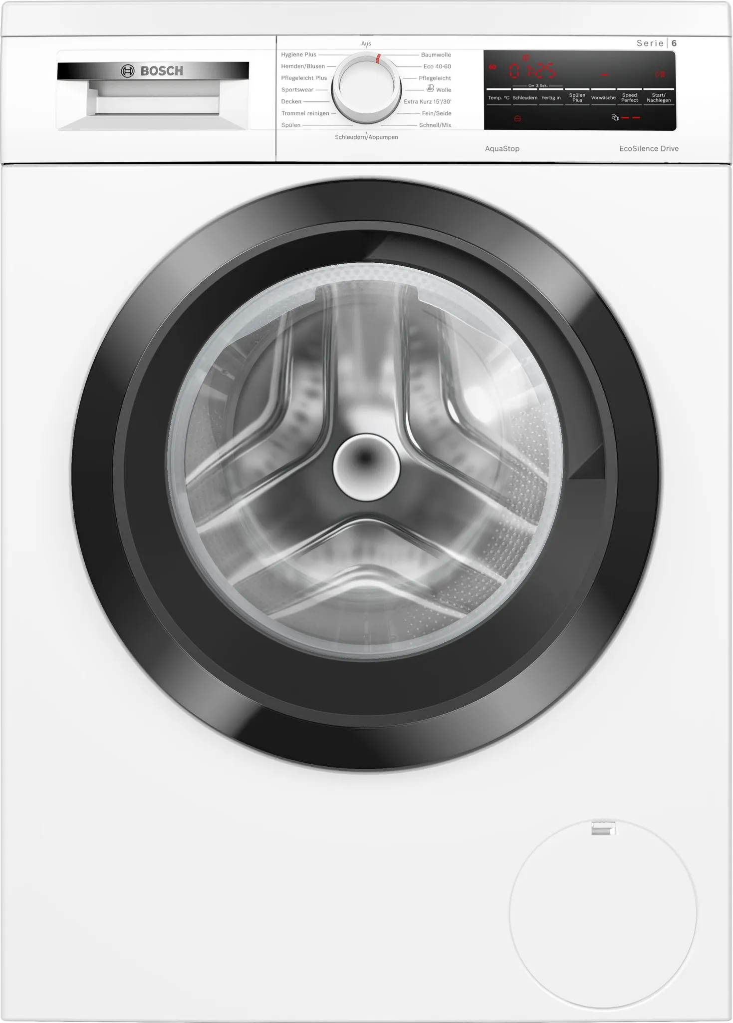 La Bosch WUU28T48 Serie 6 es una lavadora de carga frontal diseñada para ofrecer eficiencia, bajo nivel de ruido y un lavado cómodo en el día a día. Con una capacidad de 8 kg y una velocidad máxima de centrifugado de 1400 rpm, es una opción muy equilibrada para hogares que buscan buen rendimiento y ahorro energético.