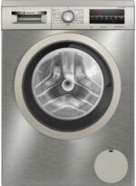 Lavadora Bosch de carga frontal en color inox con 8 kg de capacidad, 1400 rpm, motor EcoSilence™, Active Water Plus y Speed Perfect. Una opción eficiente de clase A, silenciosa y práctica para el uso diario.