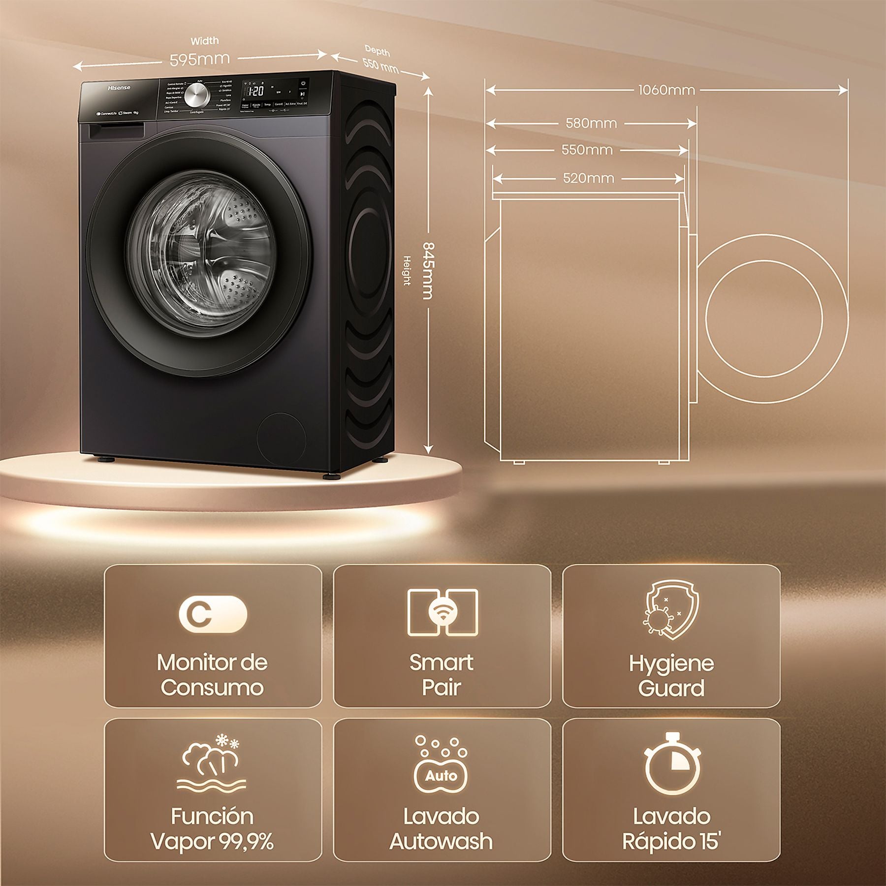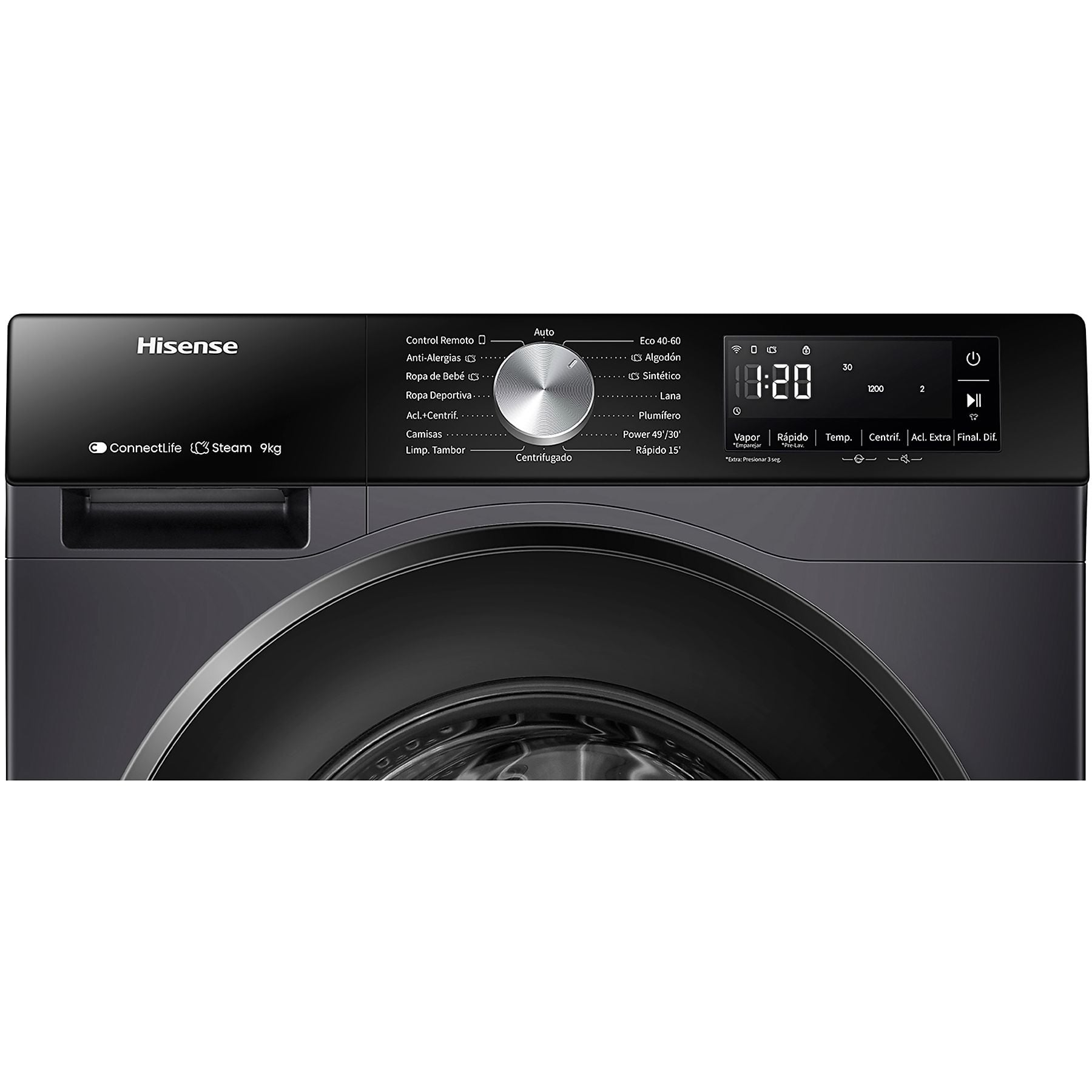 Gracias a su diseño en color negro, su capacidad de 9 kg y su consumo eficiente, esta lavadora Hisense combina estética moderna, conectividad y buen rendimiento para el uso diario.