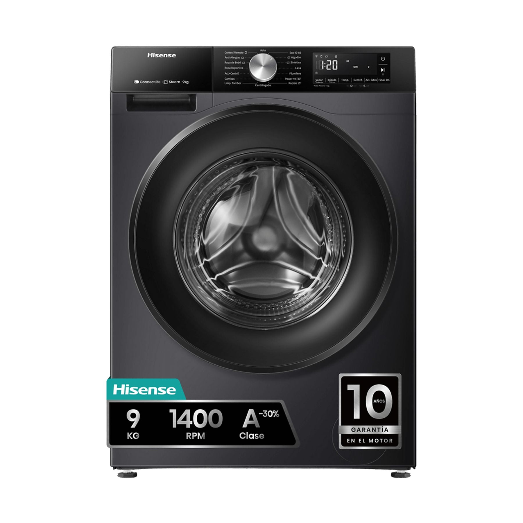 Lavadora Hisense WF3S9043BB3 9 kg 1400 rpm WiFi Clase A Negr