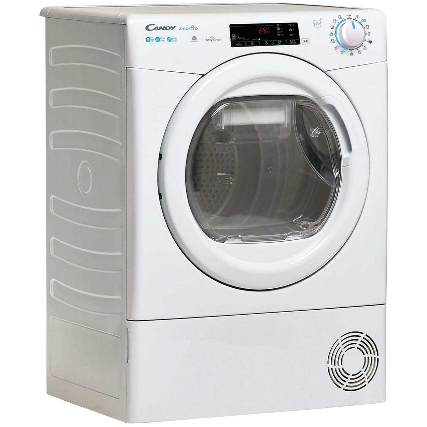 Secadora Candy Smart Pro CSOE H9A2TE-S con capacidad de 9 kg, bomba de calor, clase energética D (A++), conectividad WiFi+Bluetooth con app hOn (40+ programas descargables), Detector de Kilos, Snap&Dry, certificación Woolmark, 15 programas y función antiarrugas. Color blanco.