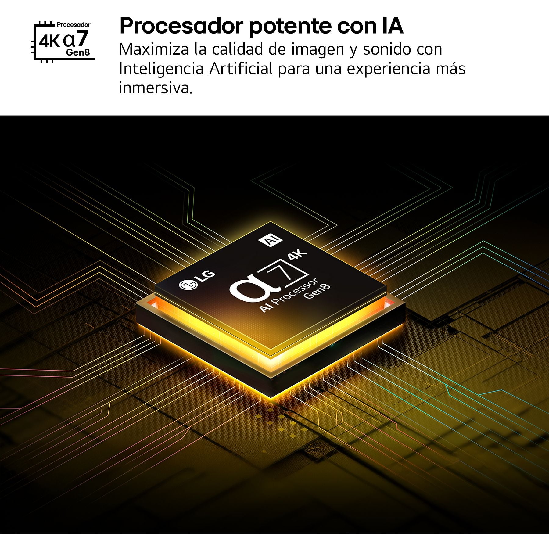 Como Smart TV, integra webOS 25, con acceso a aplicaciones, navegador web, LG Channels, Google Cast, compatibilidad con Apple AirPlay 2, Apple Home, Google Home y la app LG ThinQ. También incluye Magic Remote y control por voz para una experiencia más cómoda.