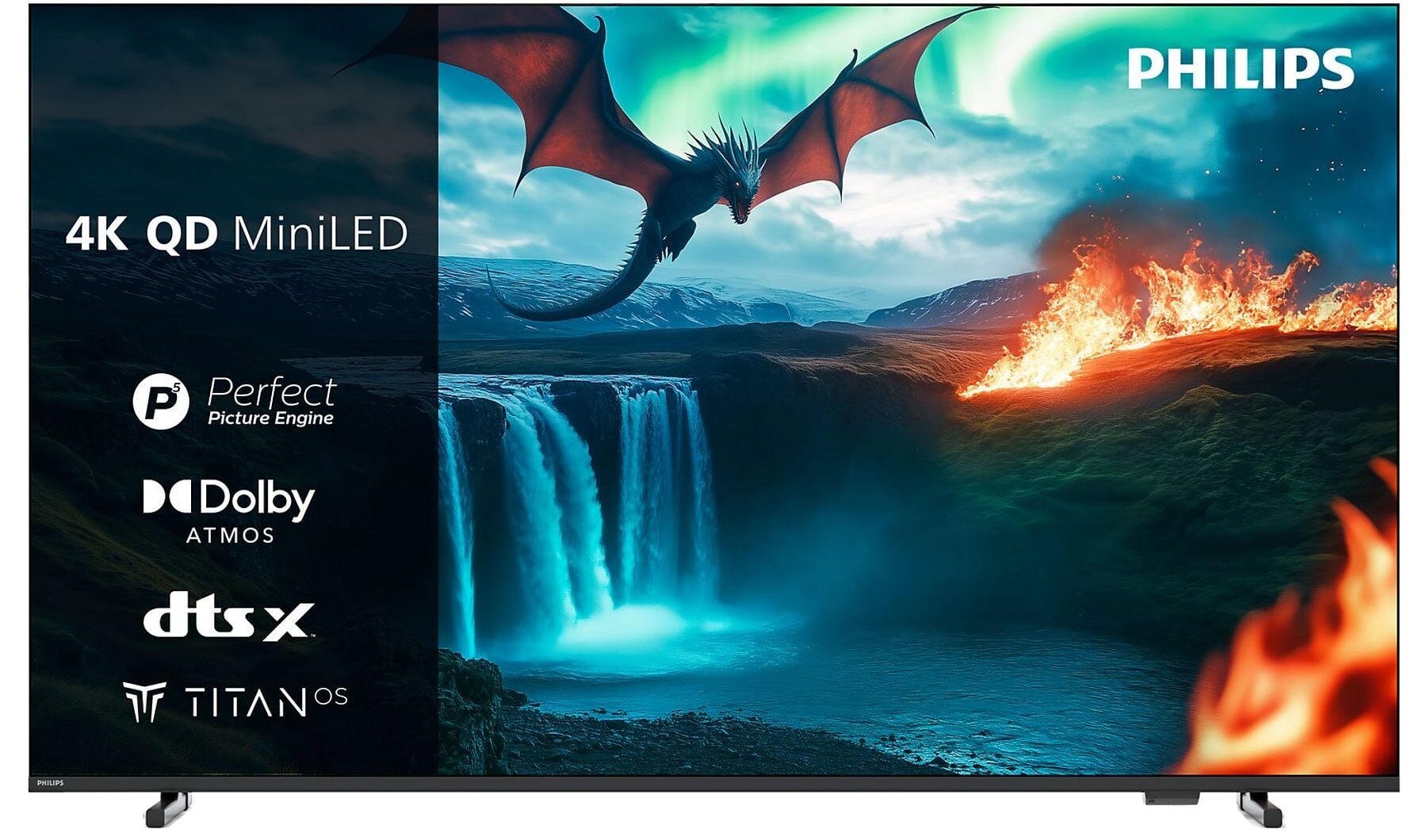 Televisor Philips 65MLED820/12 de 65″ con pantalla QD MiniLED 4K, motor P5 Perfect Picture Engine, Titan OS, Dolby Atmos y funciones gaming con VRR y ALLM.