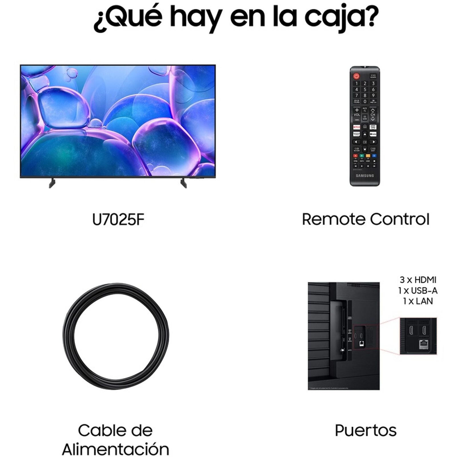 - Puertos: 3x HDMI, 1x USB, 1x Salida Óptica, 1x RJ-45
